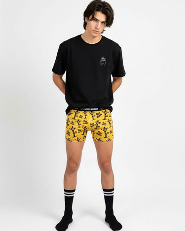Los Calzoncillos boxer hombre Pray for Monky de Loco Monky son la opción perfecta para quienes buscan comodidad y estilo en su día a día. Con un diseño único de monos crucificados haciendo los cuernos, este calzoncillo de color amarillo vibrante es una opción muy original para que luzcas con alegría tu ropa interior.