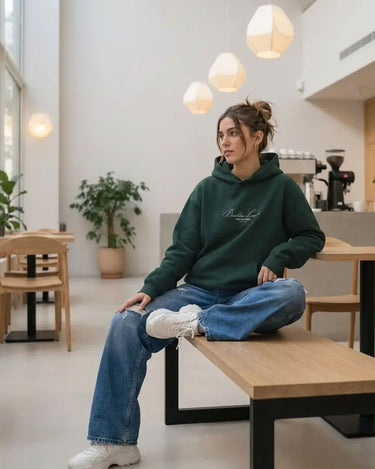 Confeccionada en un suave y cálido tejido, la sudadera garantiza que te sientas cómodo en cualquier ocasión, ya sea en un día de descanso en casa o en una salida con amigos. Su color dark green brinda una versatilidad excepcional, permitiendo combinarla fácilmente con diferentes estilos.