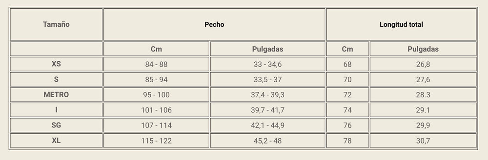 Guía de tallas